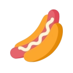 Pão, salsicha, bacon, vinagrete, ervilha, milho, batata e molho